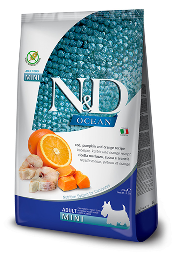 tőkehal (25%), dehidratált tőkehalfehérje (25%), borsó keményítő, halolaj (heringből), szárított sütőtök (5%), borsórost, szárított sárgarépa, alfalfaliszt, inulin, frukto-oligoszacharidok, élesztő kivonat (manno-oligoszacharidok forrása), szárított édesnarancs (0,5%), szárított alma, szárított gránátalma, szárított spenót, útifűmaghéj (0,3%), szárított áfonya, nátrium-klorid, szárított sörélesztő, kurkuma (0,2%), aloe vera kivonat, glükózamin, kondroitin-szulfát.